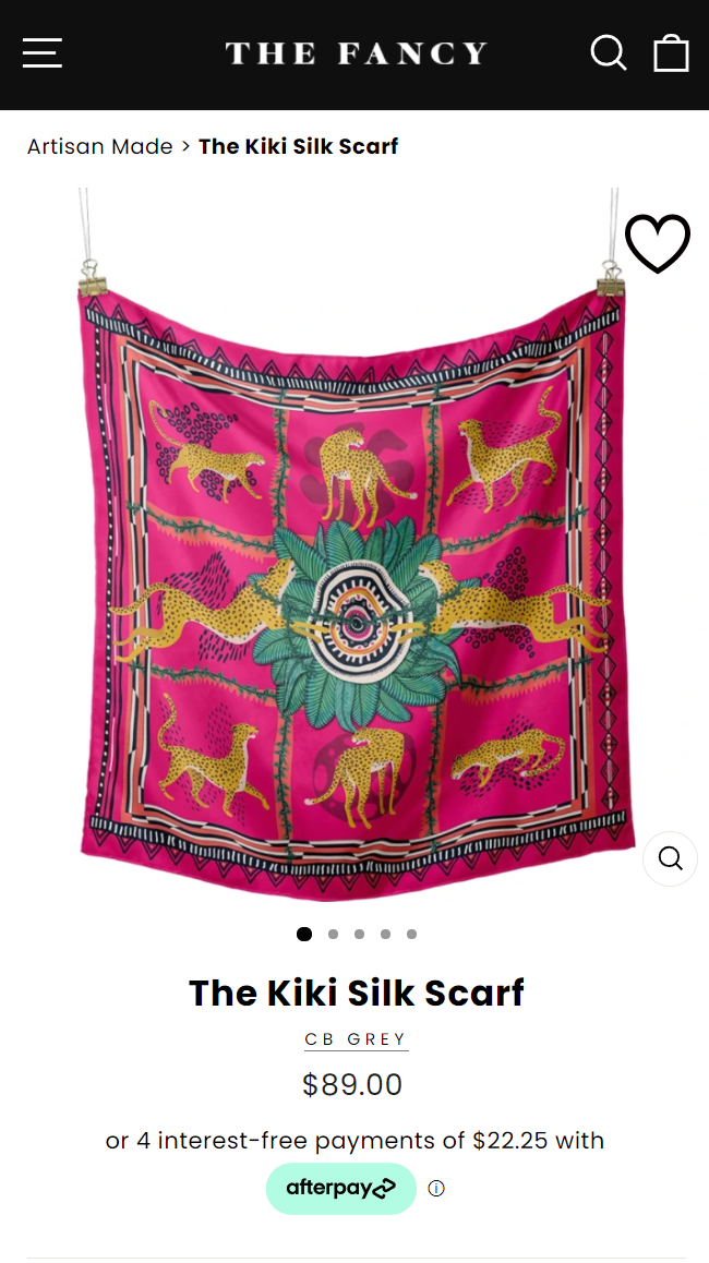 Fancy è un meraviglioso esempio a tal proposito. Nella versione mobile del loro ecommerce mostrano i vari prodotti con una grande immagine quadrata a tutta larghezza, con la possibilità anche di fare zoom ed analizzare i dettagli del prodotto. È un’ottima esperienza sfogliare il loro ecommerce in quanto puoi vedere chiaramente un elemento visualizzato. Ancora più importante, la maggior parte delle foto è di alta qualità e ogni articolo è presentato bene. L’illuminazione, la composizione e la qualità complessiva delle immagini sono sufficientemente elevate che, come utente, viene voglia di continuare a navigare.