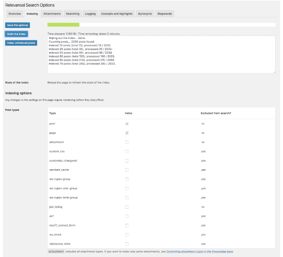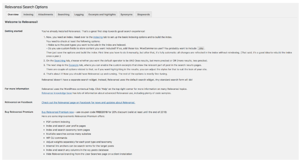 Di seguito, una serie di screenshot disponibili all’interno della scheda del plugiin. Iniziamo da una panoramica delle impostazioni base di Relevanssi.