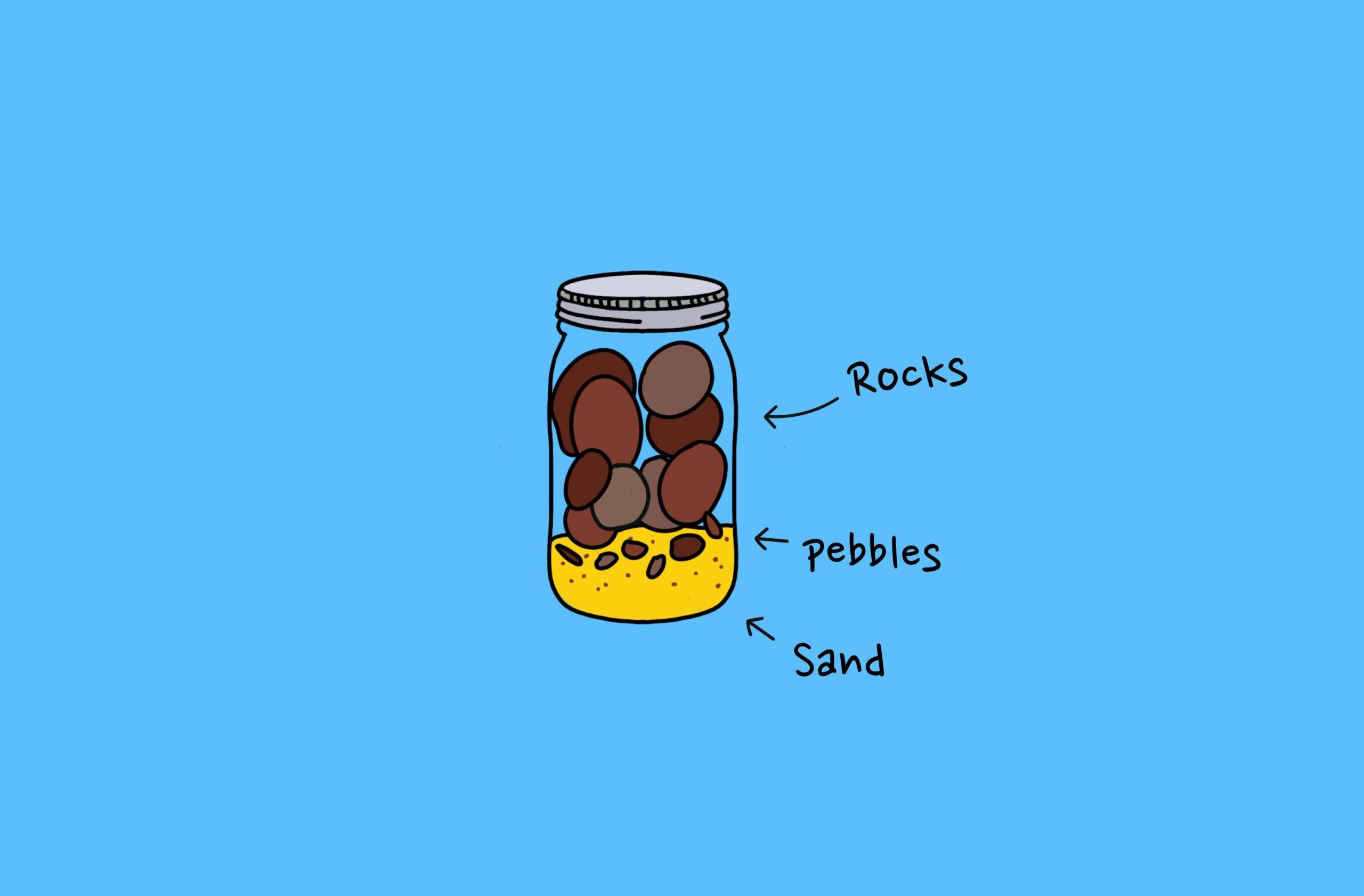- I Pebbles sono essenziali ma meno rischiosi: dovresti completarli e testarli all’inizio, ma solo dopo aver risolto i Big Rocks.