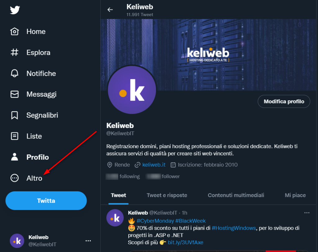 Effettua l’accesso al tuo profilo Twitter, dopodiché guarda sulla barra di sinistra dove trovi tutte le funzionalità che il social ti mette a disposizione. Clicca su Altro e poi su Strumenti per professionisti.